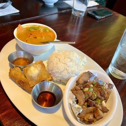 I'm embarrassed to say it's taken me a decade to try this little Thai option off 11th in my neck of the woods. There are some really solid Thai options in SLC and I tend to get set in my ways with my faves. The experience, food, service and ambience were nice overall though I think I'll probably lean back into my go to Thai faves going forward and I have a couple of reasons why: 1) No alcoholic bevvys. If I'm going out to dinner at a restaurant, as an adult, this is a no brainer. Thai Archer needs a liquor license. Feeling fuzzy will always elevate the food and social experience. 2) Small/cramped/slightly shabby space. The Asian decor worked but it felt like the space was maze-like, unintentional, too small, and needing some updates and love. I appreciated locality and family owned feel, but it does need some investment. Also, the front facade has always been off putting for me - looks like roughly cut and painted purple plywood installed against a converted Sugarhouse bungalow, and it doesn't work. 3) Food was good and above average, but it lacked personality and memorability. The red and yellow curries were flavorful, as was the Tom Yum soup. The Thai tea wasn't my jam. I do think with some investment this could be a local gem with booming business, but it doesn't feel like a priority of the current ownership. This place is never packed, but that may be intentional and part of the charm that is this little low-key and overlooked Thai option in Sugarhouse.