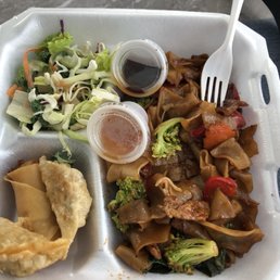 food is fabulously delicious and great prices with large portions The owners are absolutely wonderful and service was great. It was a delight. The atmosphere is fun and there is also a great patio out front. Love the decor, best Thai food around.